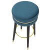 Barová židle Ø 35x74 cm, borovicové dřevo, kov, pěna, polyester, sametový potah petrolejové barvy, zlatý ozdobný pásek, kroužek na noze a koncovky, černé nohy, luxusní, stylové, pohodlné.