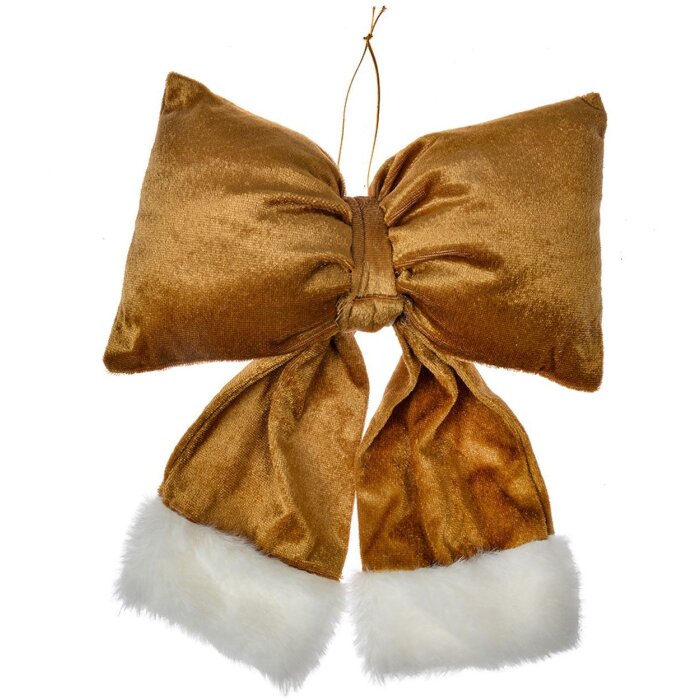 Ozdobná mašle Clayre & Eef, 22x5x26 cm, zlatá barva s bílými detaily, vysoce kvalitní syntetický materiál, ideální pro vánoční dekorace a balení dárků.