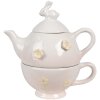 Clayre & Eef čajová souprava, bílá, keramika, venkovský styl, konvice 500ml, hrnek 275ml, rozměry 18x12x13cm / Ø15x11x7cm