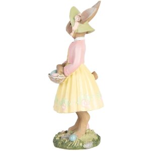 Clayre & Eef Dekorativní králík béžový žlutý 5x6x12 cm Velikonoční dekorace z polyresinu