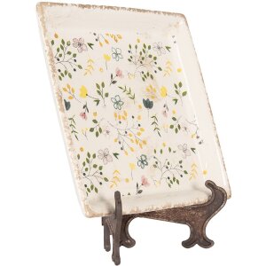 Clayre & Eef Dekorativní talíř 22x22 cm Béžový vintage keramický květinový vzor