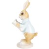 Dekorativní králík Clayre & Eef, detailní polyresinová figurka, hravý design s brýlemi a novinami, kompaktní rozměry 9x9x15 cm, venkovský styl v béžové a modré barvě, ideální velikonoční dekorace.