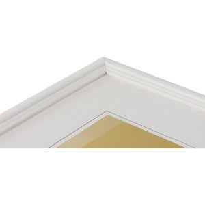 Dřevěný rám 30x40 cm, zaoblená lišta v bílé barvě, čiré sklo, očka pro formát na výšku i na šířku, vnější rozměry 33x43 cm.
