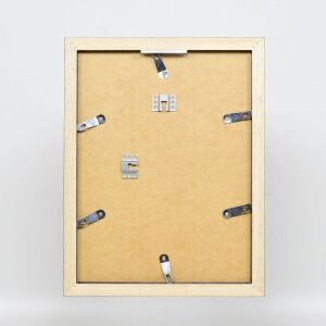 Rám z masivního dřeva s širokým a hlubokým blokovým profilem, viditelná struktura dřeva, šířka lamel: 3,0 cm