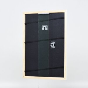 Rám z masivního dřeva, středně široký drážkovaný lamelový profil, lakovaný s otevřenými póry