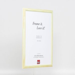Rám z masivního dřeva, středně široký drážkovaný lamelový profil, lakovaný s otevřenými póry