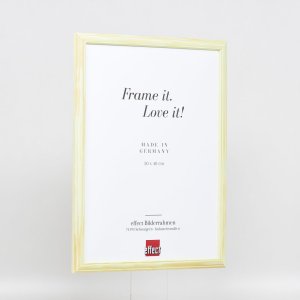 Rám z masivního dřeva, středně široký drážkovaný lamelový profil, lakovaný s otevřenými póry