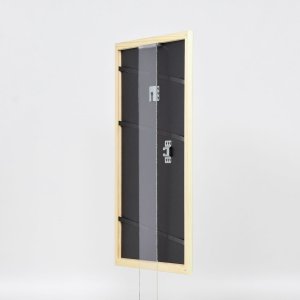 Rám z masivního dřeva, středně široký drážkovaný lamelový profil, lakovaný s otevřenými póry