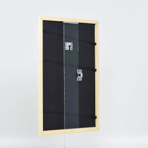 Rám z masivního dřeva, středně široký drážkovaný lamelový profil, lakovaný s otevřenými póry