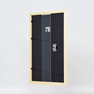 Rám z masivního dřeva, středně široký drážkovaný lamelový profil, lakovaný s otevřenými póry