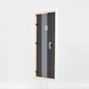 Rám z masivního dřeva, středně široký drážkovaný lamelový profil, lakovaný s otevřenými póry
