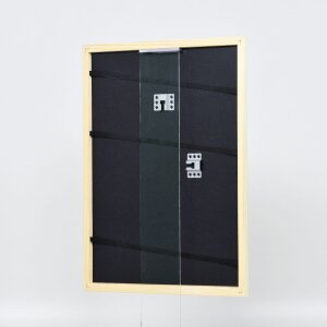 Rám z masivního dřeva, středně široký drážkovaný lamelový profil, lakovaný s otevřenými póry