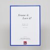 Hliníkový rám v zářivě modré barvě s vysoce kvalitním muzejním sklem, vhodný pro montáž na stěnu, zadní panel z MDF se stojanem, ideální pro Alu-Dibond, akrylové sklo nebo dřevo, úzký profil lišty, muzejní sklo chrání před UV zářením a prachem.