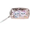 Toaletní taška růžová, 18x7x10 cm, PU materiál, roztomilé kočičí motivy, stříbrný zip, ideální na cesty
