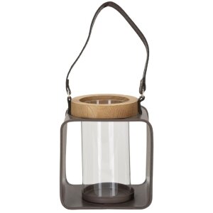 Mauro Ferretti lucerna, 16x13x18,5 cm, smrkové dřevo, sklo, železo, umělá kůže, hnědá, klasický design s nádechem nostalgie, stylový zdroj světla do interiéru i exteriéru