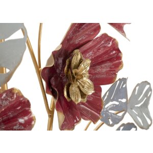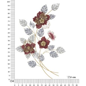 Nástěnný panel 68,6x7,6x98,4 cm, železo, tmavě červená, zlatá a stříbrná barva, květinový 3D design s květinami a listy, elegantní a romantický pro stylový design stěn