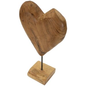Ručně vyrobená socha z recyklovaného teakového dřeva, 25x12x45 cm, hnědá, tvar srdce na podstavci, rustikální unikát s emotivním designem od Maura Ferrettiho.