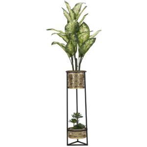 Stojan na rostliny Ø 23x80 cm, kov, černá a zlatá barva, se 2 odnímatelnými květináči s filigránovým vzorem, moderní, dekorativní, s orientálním nádechem.