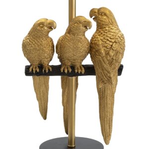 Stolní lampa Papoušek Ø 30x62,5 cm, černo-zlatá, patice E27, zlatý podstavec s postavou papouška, černé látkové stínítko, exoticko-elegantní design