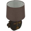 Stolní lampa Tribal, průměr 27,5x39,5 cm, polyresin/železo/látka, barva hnědá se zlatými akcenty, 1x E27 max. 40W, 220V, tvář inspirovaná kmenovými motivy se šedým látkovým stínidlem pro uměleckou atmosféru