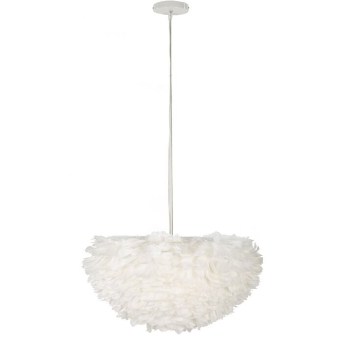 Stropní svítidlo Feder, průměr 60x30 cm (výška s kabelem 110 cm), kov/plast, barva bílá, 1x patice E27 max. 40W, 220V, peříčkový stínidlo pro jemné světlo a elegantní atmosféru bydlení