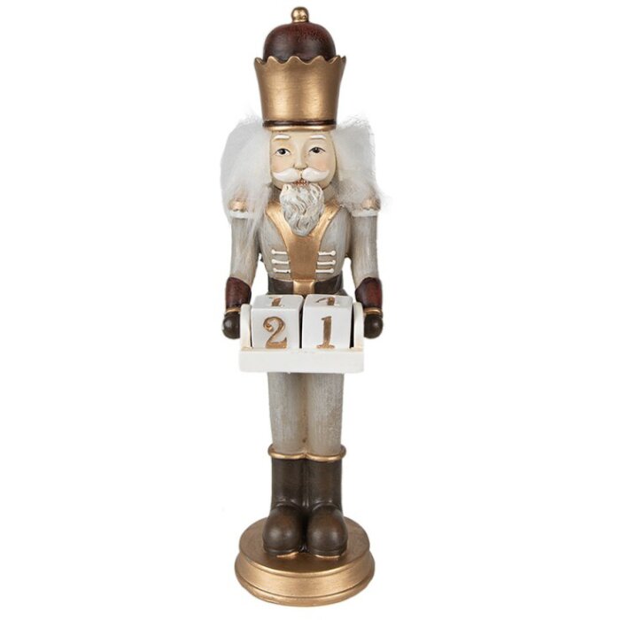 Clayre & Eef Vánoční dekorace louskáček na ořechy s kalendářem šedozlatý 7x7x22 cm